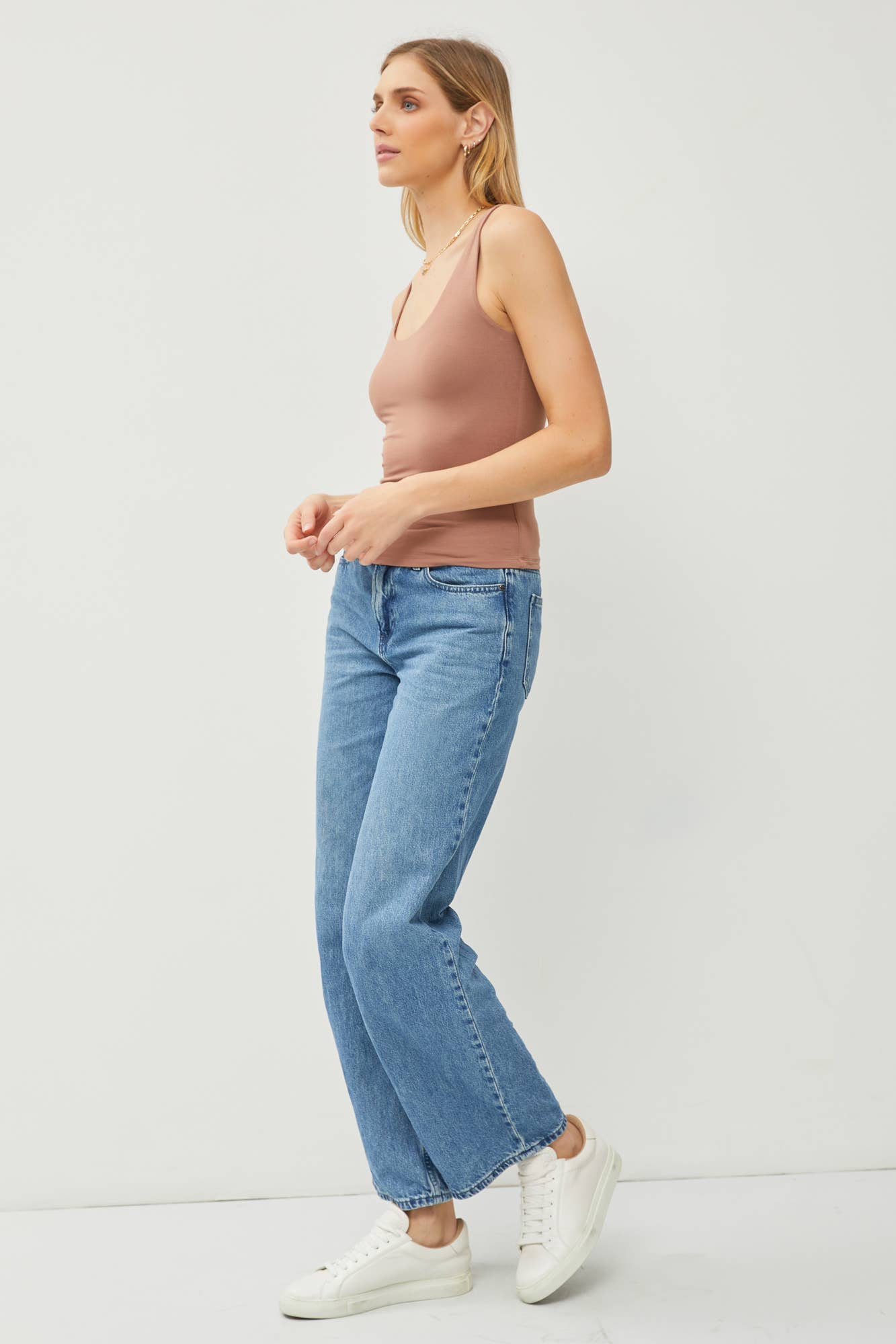 This scoop neck tank is crafted from soft and stretchy jersey fabric, ensuring a comfortable fit. It features a blend of spandex for added flexibility and a double lining for extra security.
