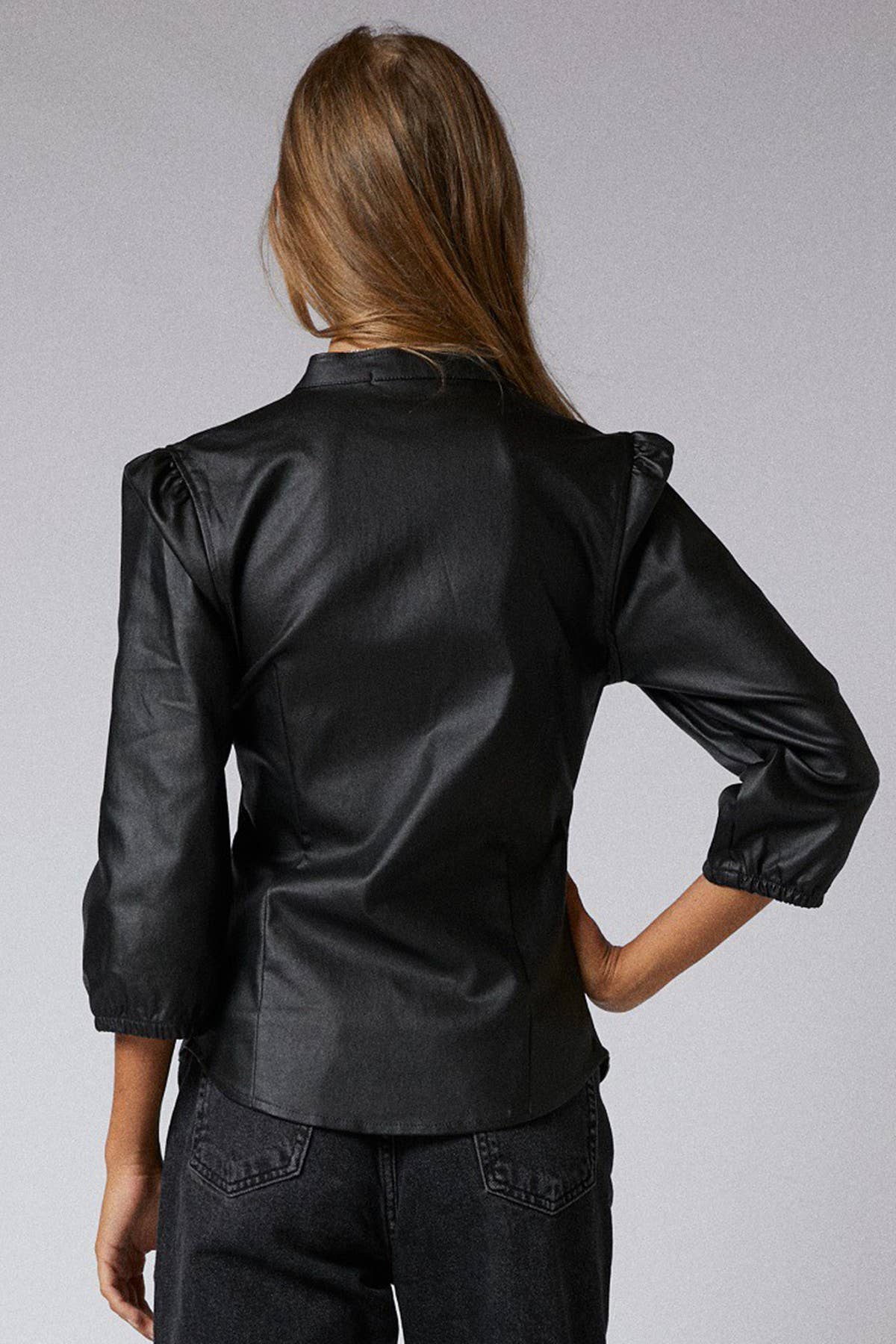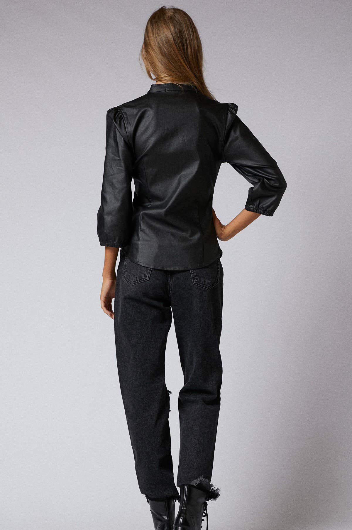 Elbow Balloon Sleeves Mandalin Collar Split Neck Button Down