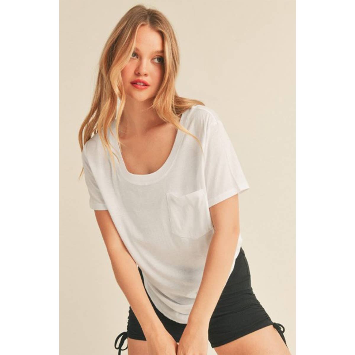 Basic Scoop Neck Top w/ Front Pocket
