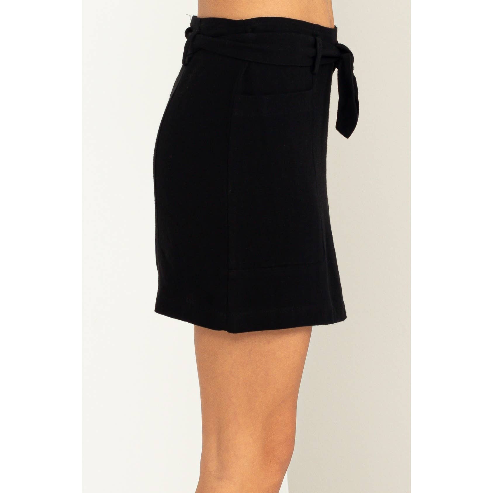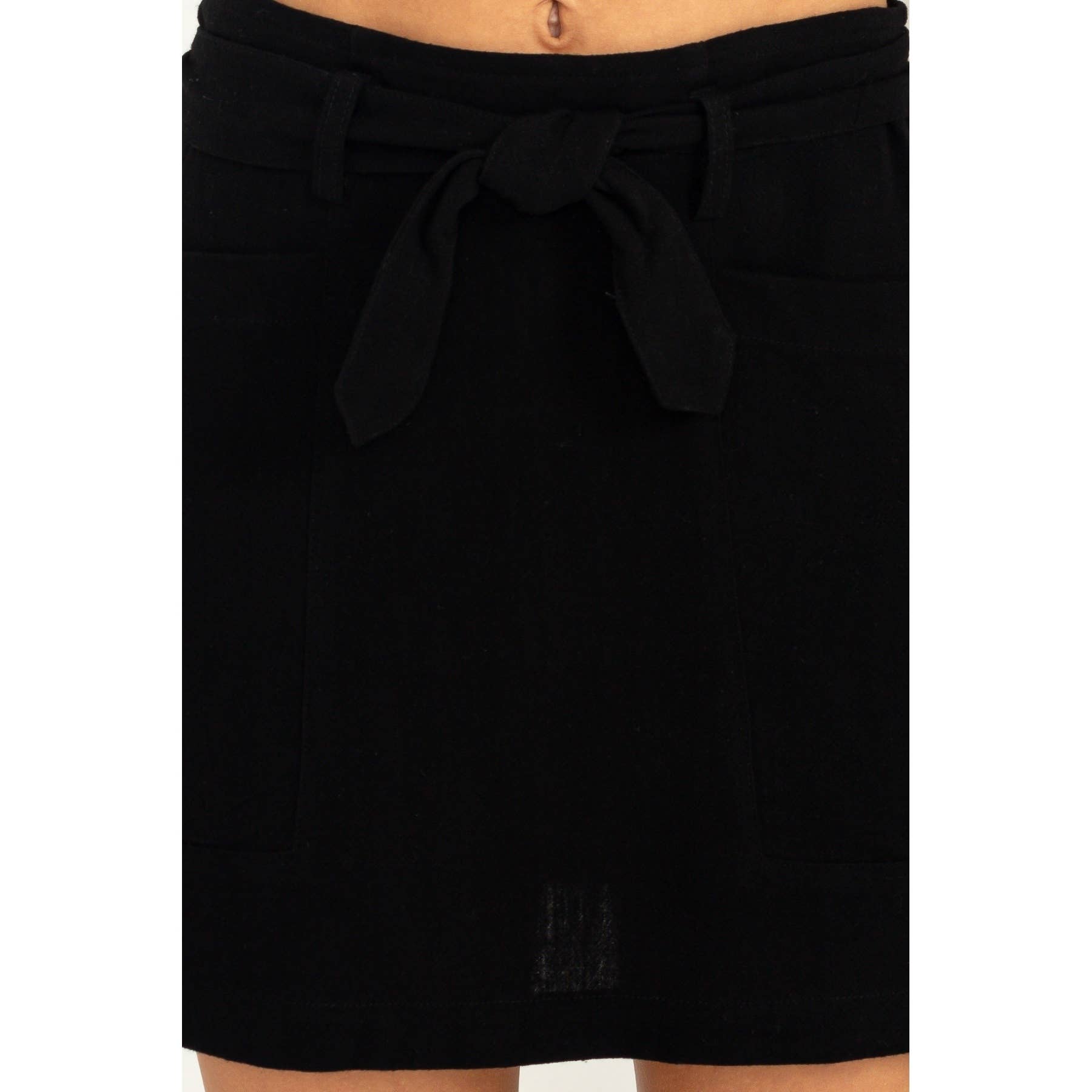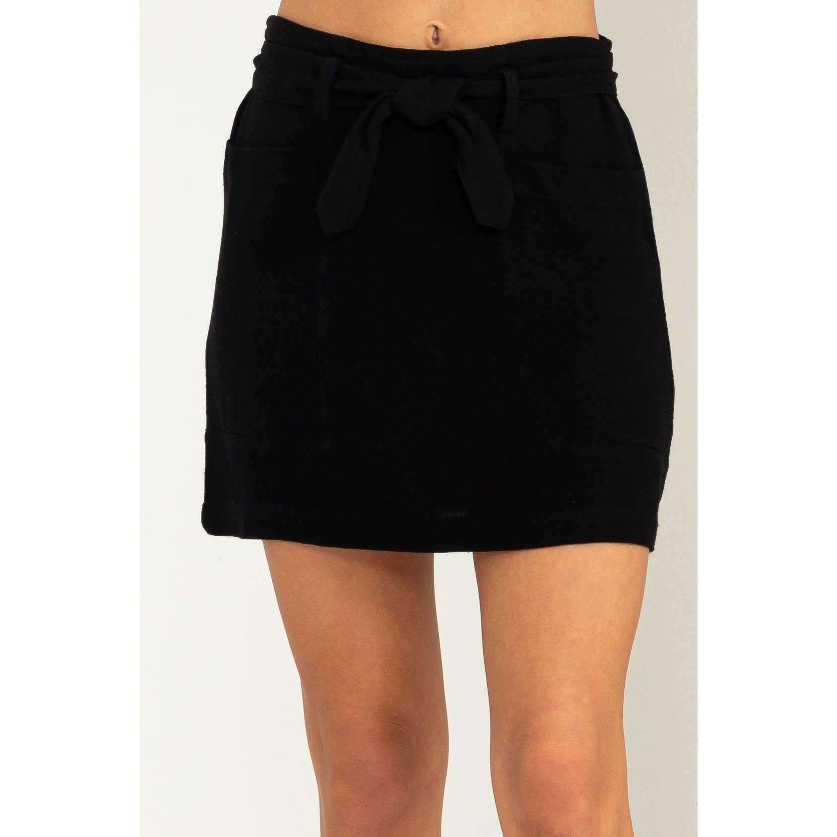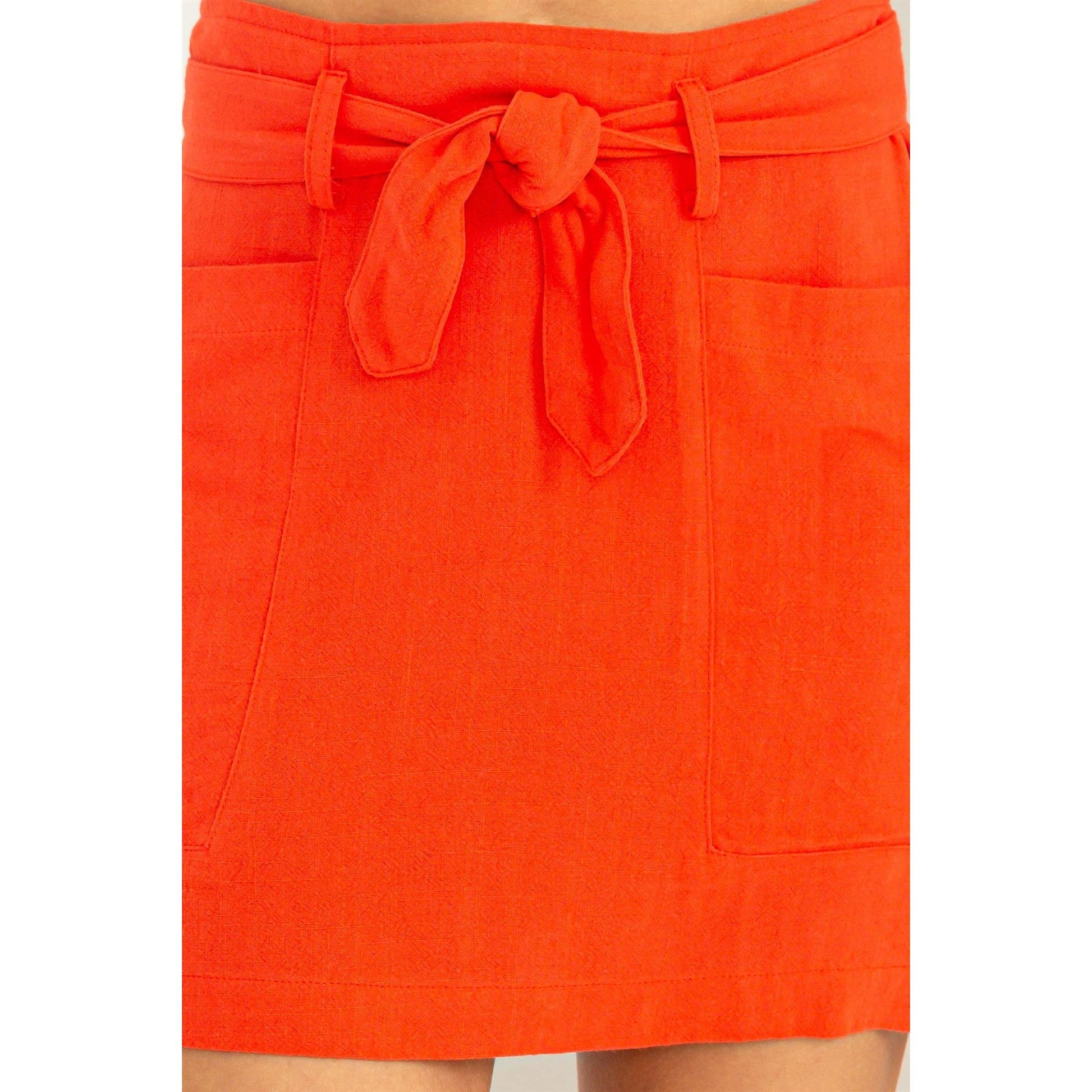 This skirt boasts a middle-rise, accentuated by a self-tie sash belt, creating an effortless and chic look. Its curve-defining silhouette is completed with twin patch pockets at the front, adding to its overall appeal.