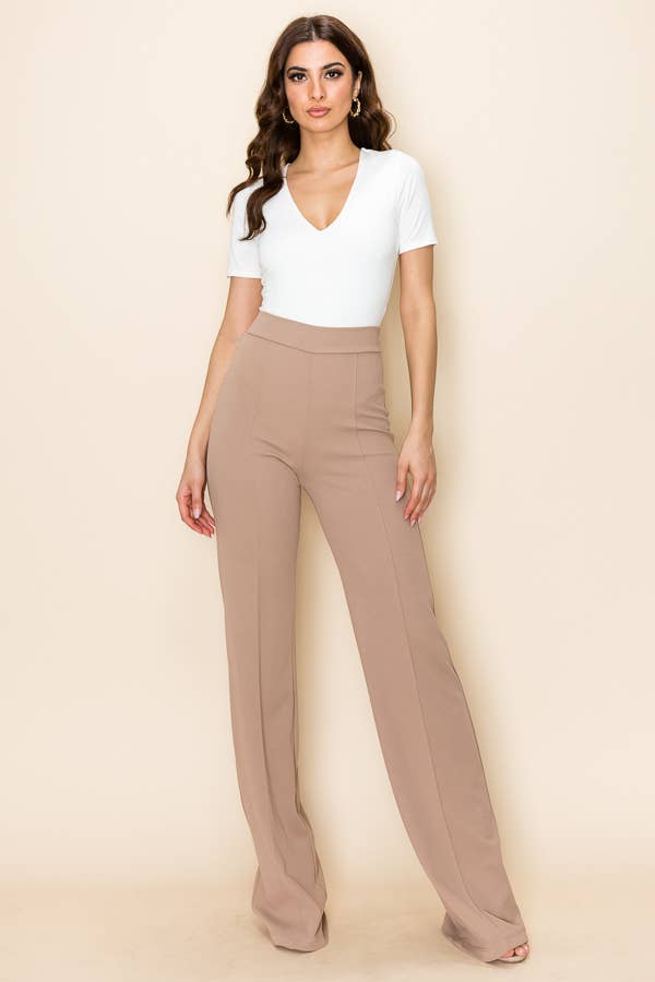 Our most popular pant, pin tuck front detail with a zipper closer located at the back. High rise with stretchy knit crepe fabric for the best fit for any body type.