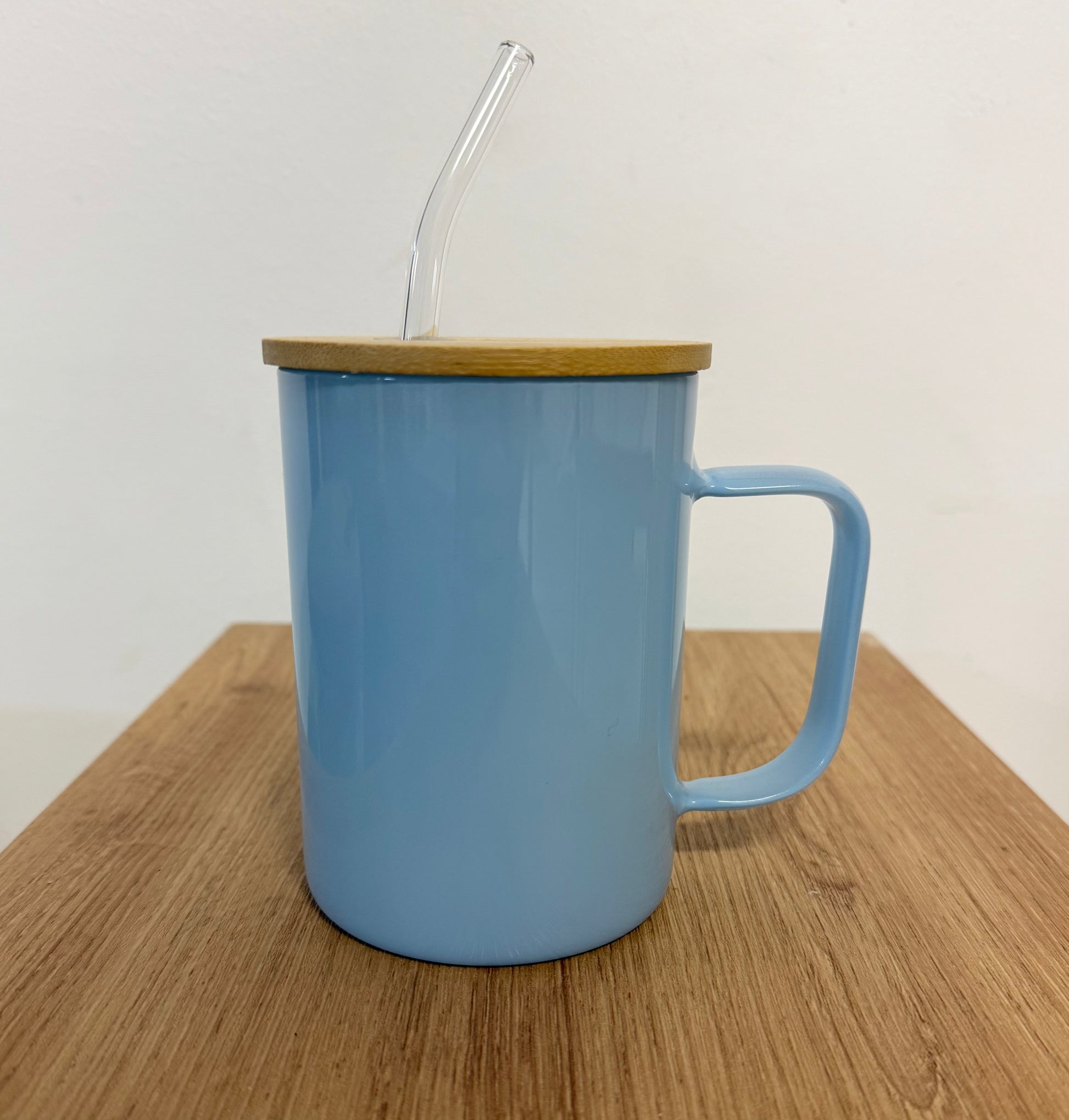 Metal Coffee Cup with Bamboo Lid and Straw