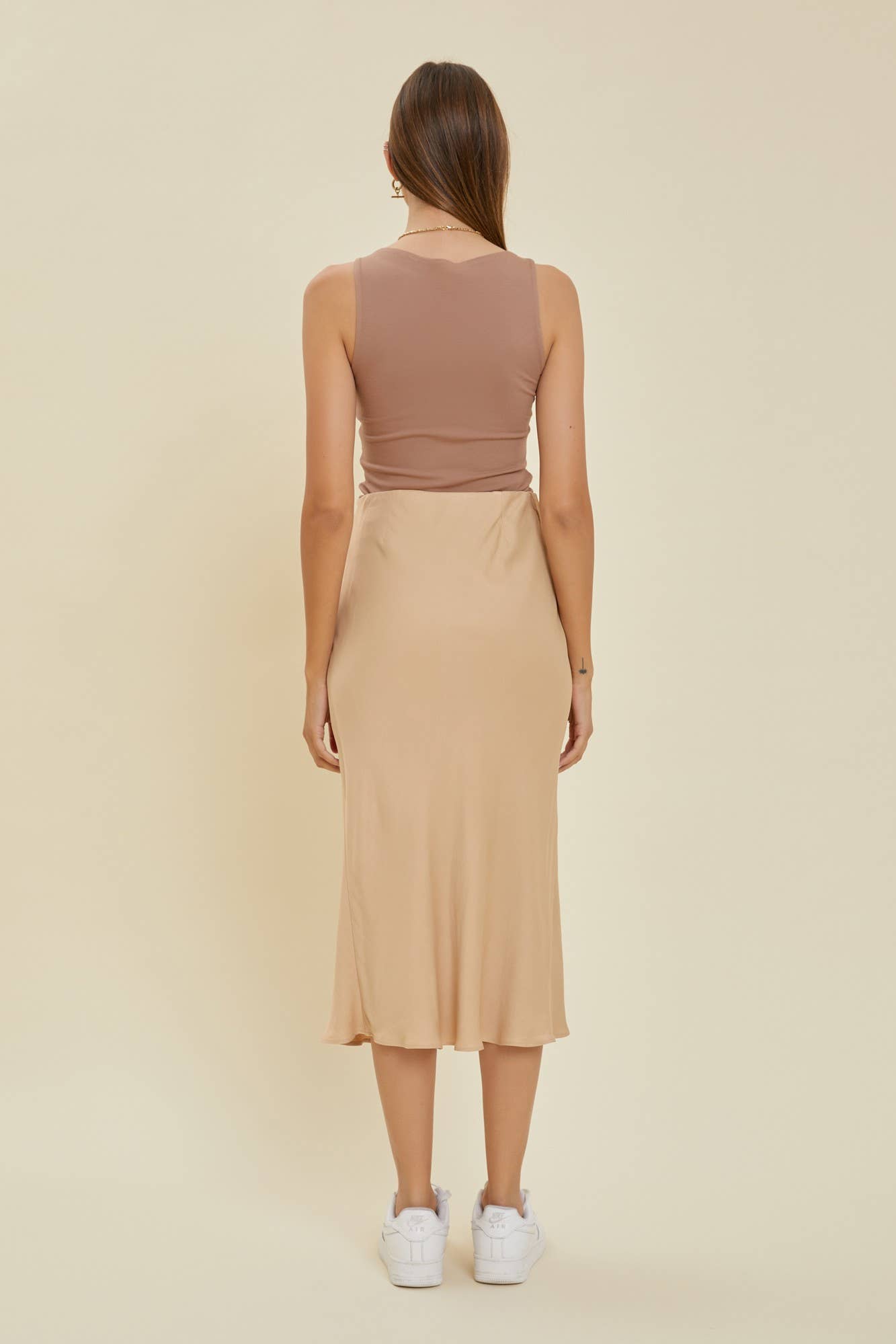 Crafted from luxurious satin, The Eleanor Skirt boasts an elastic waistband and a playful hemline, making it the ideal choice for any special occasion.